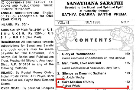 Robert Priddy's former promotion and elucidations of - and commentaries on - Sathya Sai Baba's teaching